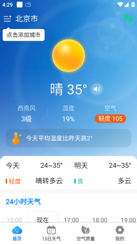 3、空氣質量監測:提供空氣質量指數(AQI)及空氣質量等級,提醒用戶注意健康,特別是對于那些對天氣敏感的人群。
