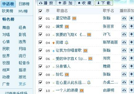 5、對感興趣的歌曲進行播放或下載。
