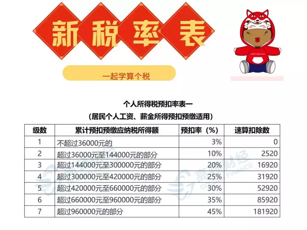根據最新的政策調整,讓我們來看一下最新的個人所得稅稅率表: